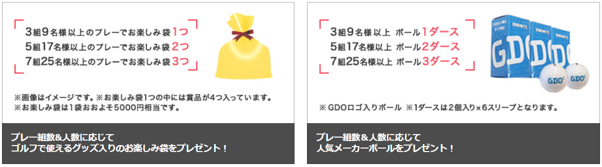 プレー組数&人数に応じてプレゼントしています!!