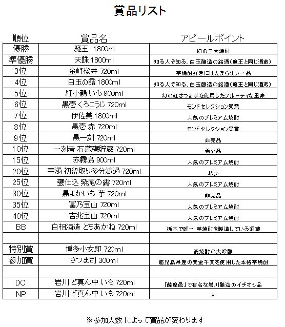 ちなみにこちらが賞品リスト。
