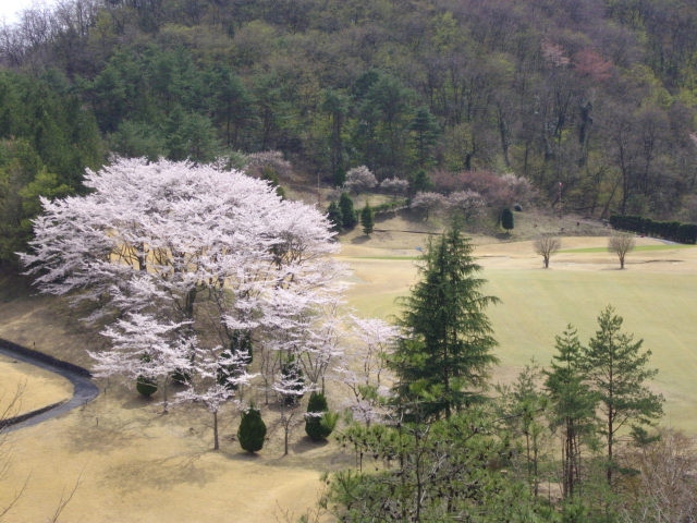 ゴルフ場までの道が桜のトンネルになっているんです。