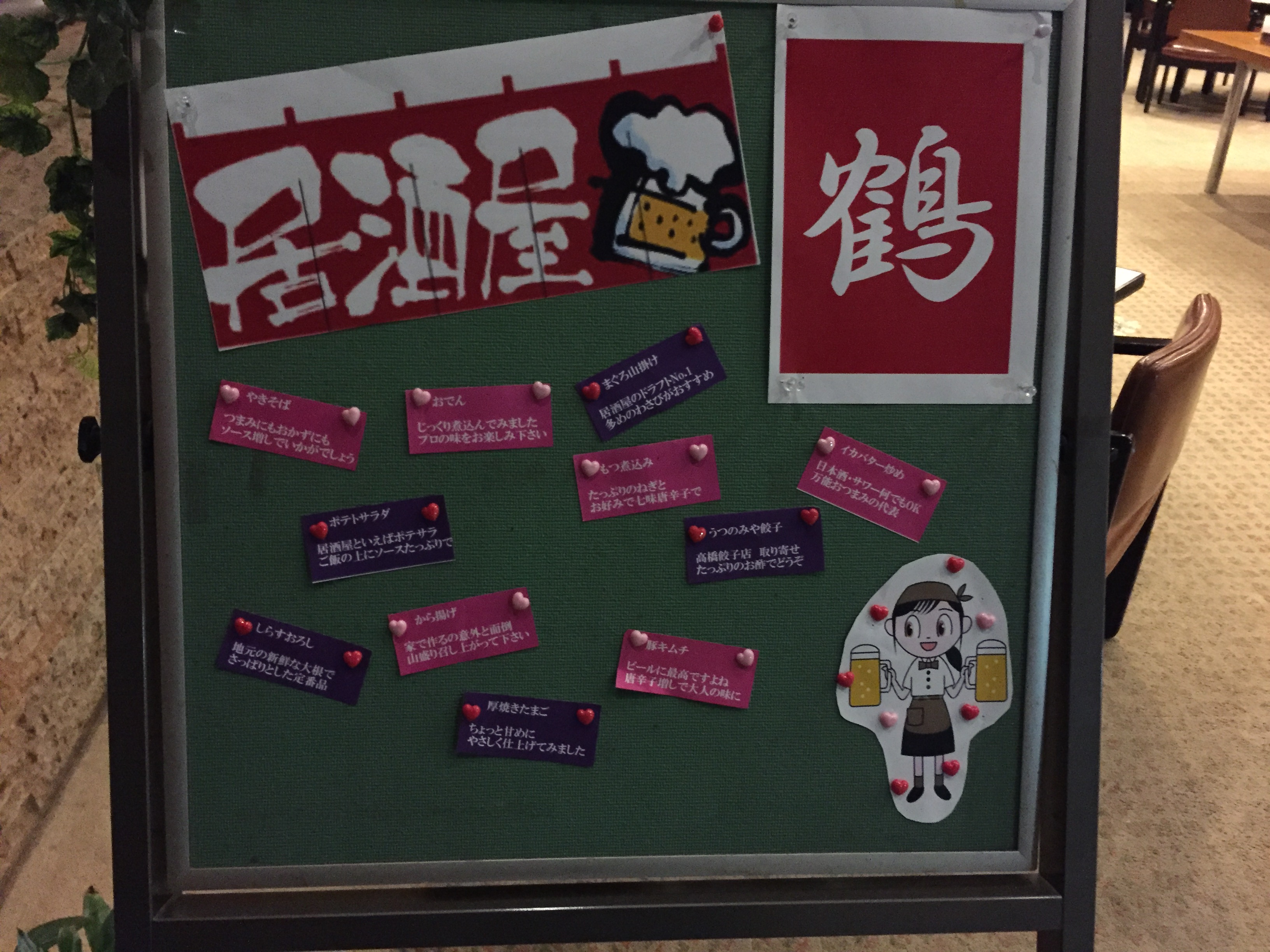 夜7時に着いたらなんと、居酒屋 鶴 が営業しておりました(昼間はレストラン)