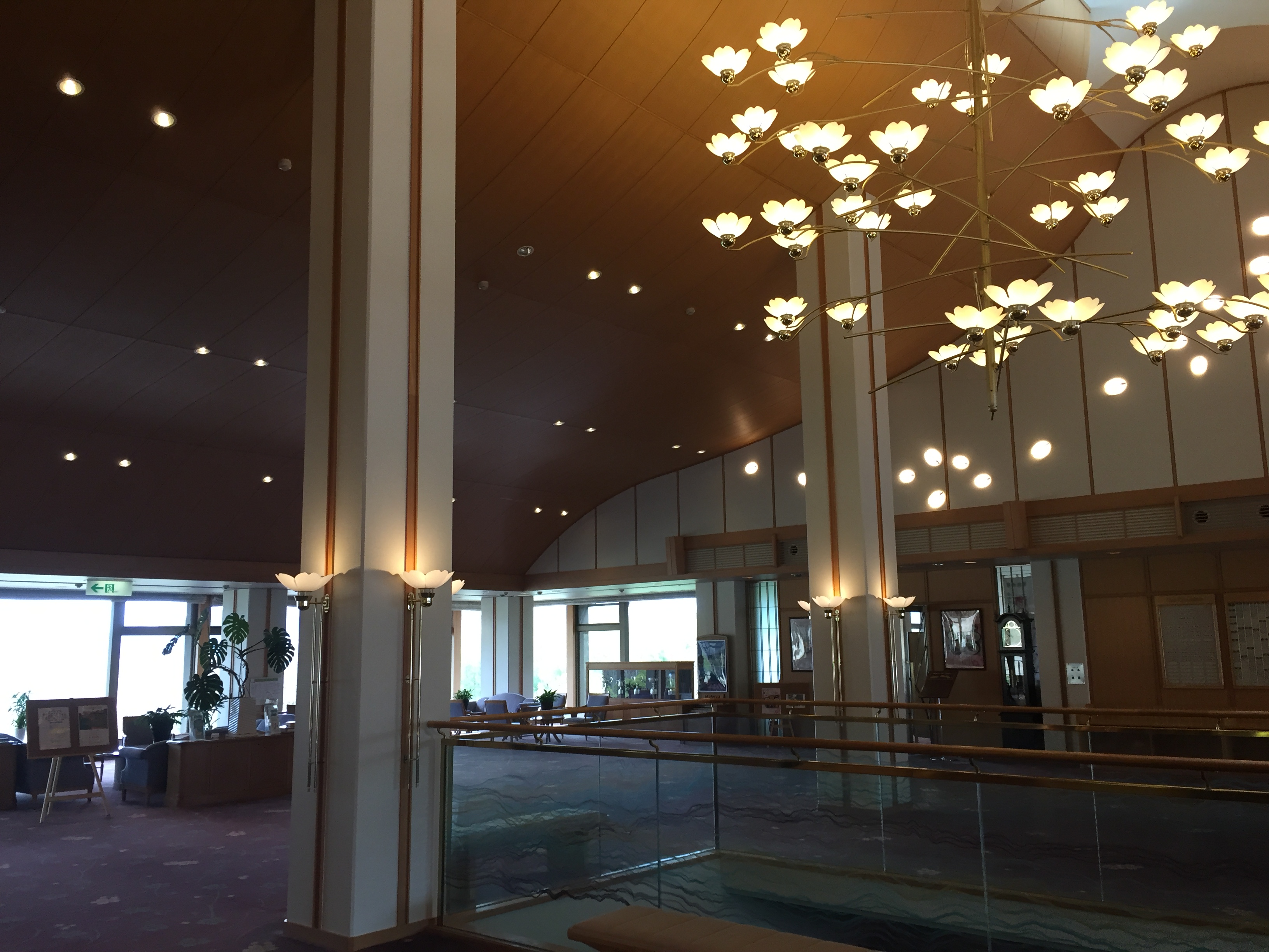 クラブハウス内に入ってすぐに目に付くのが、天井より吊られているシャンデリア。