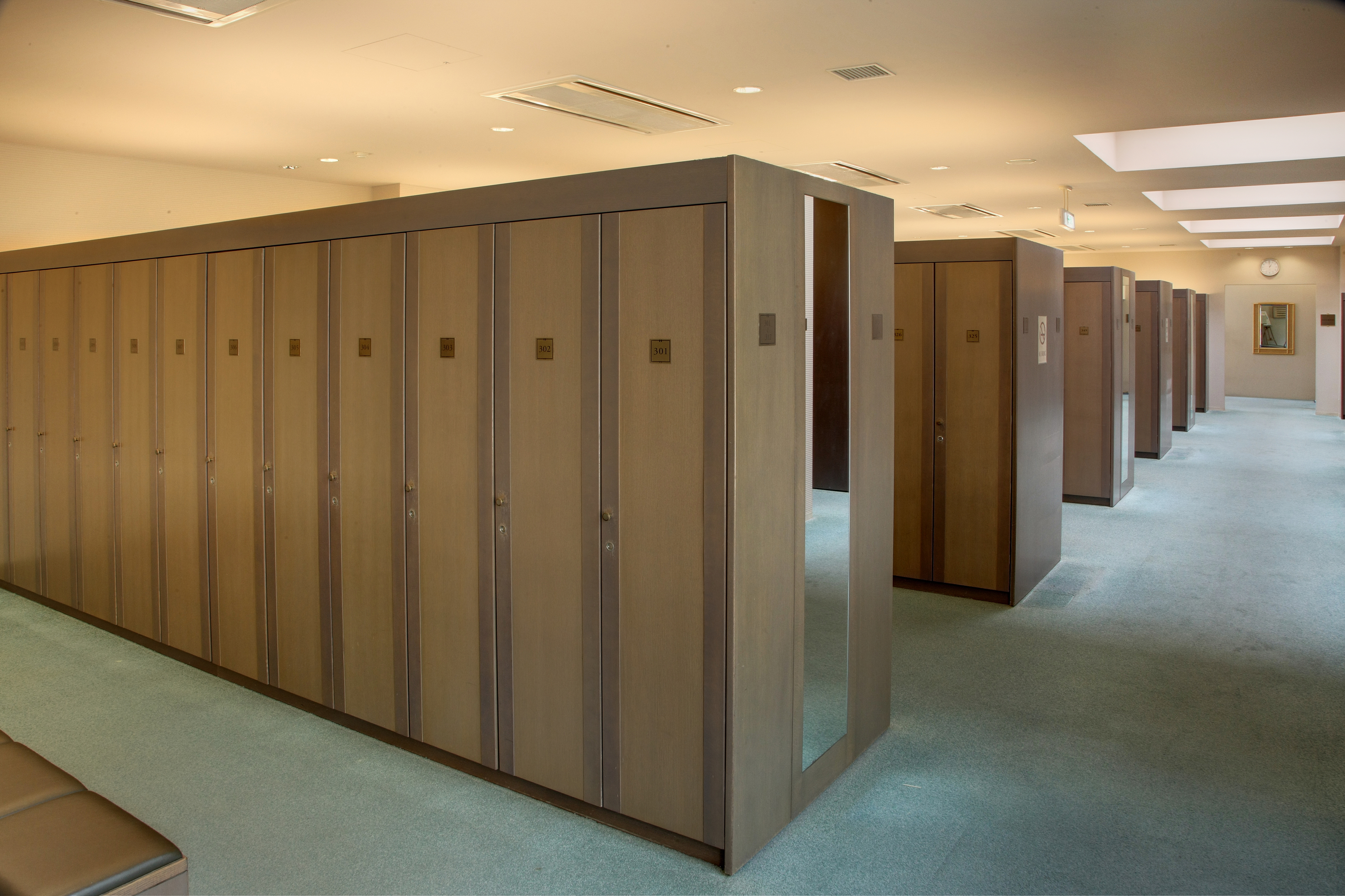 美しい山の稜線が一望できる全面をガラスで覆ったロッカールーム、