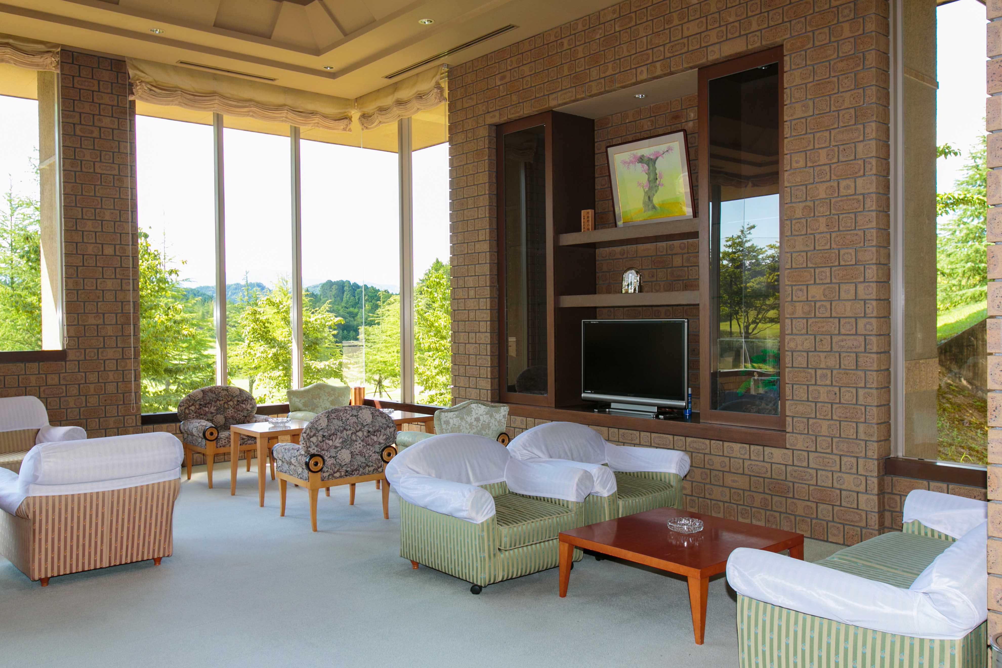 クラブハウスはシックな色合いで「迎賓館」という名に相応しい佇まい。