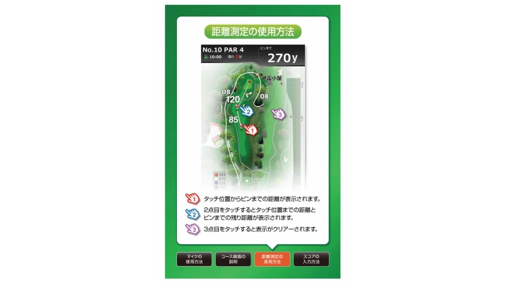 また、カートから離れた位置にあるボールからピンまでの残ヤードがわかるようになったほか、
