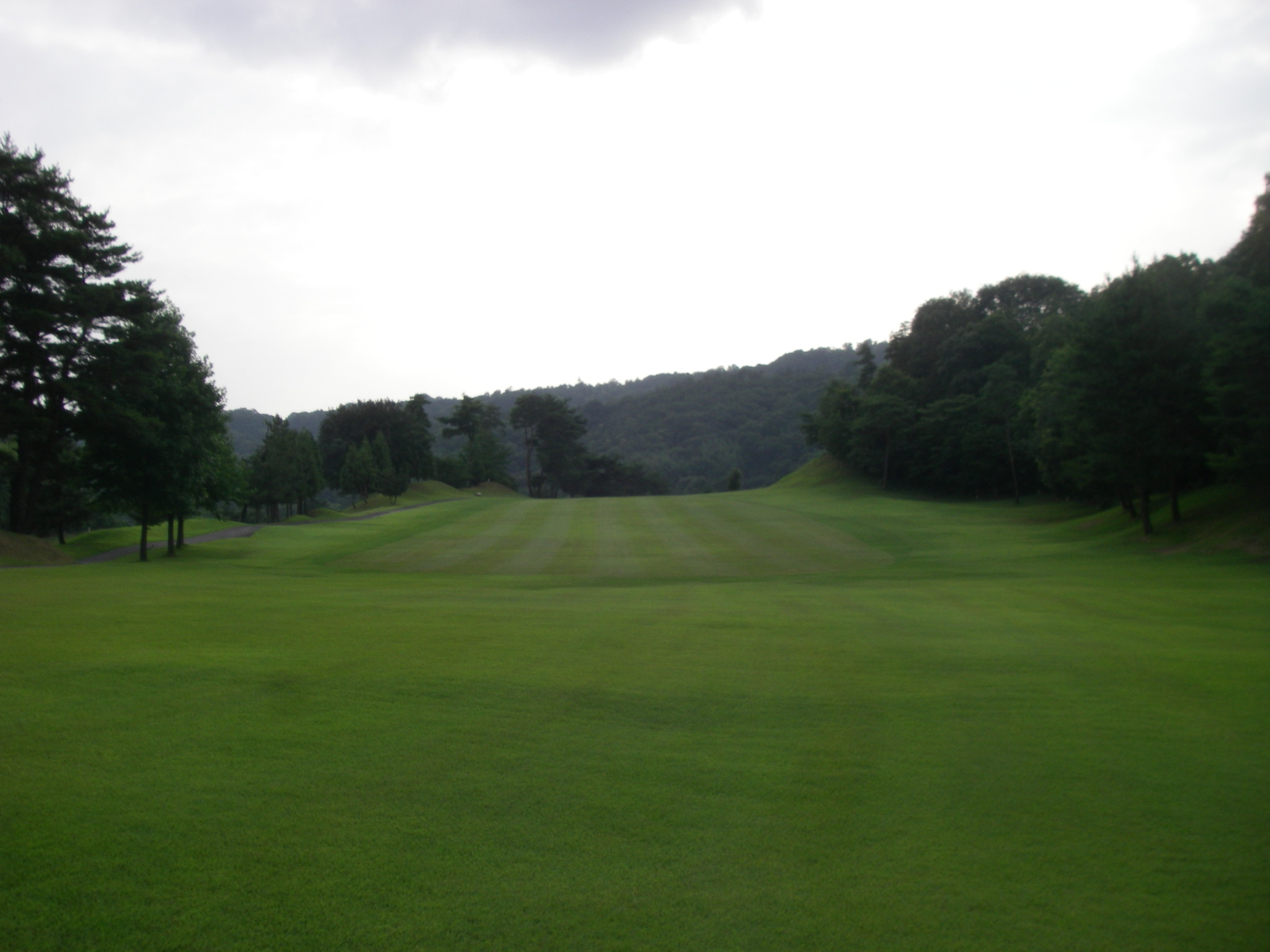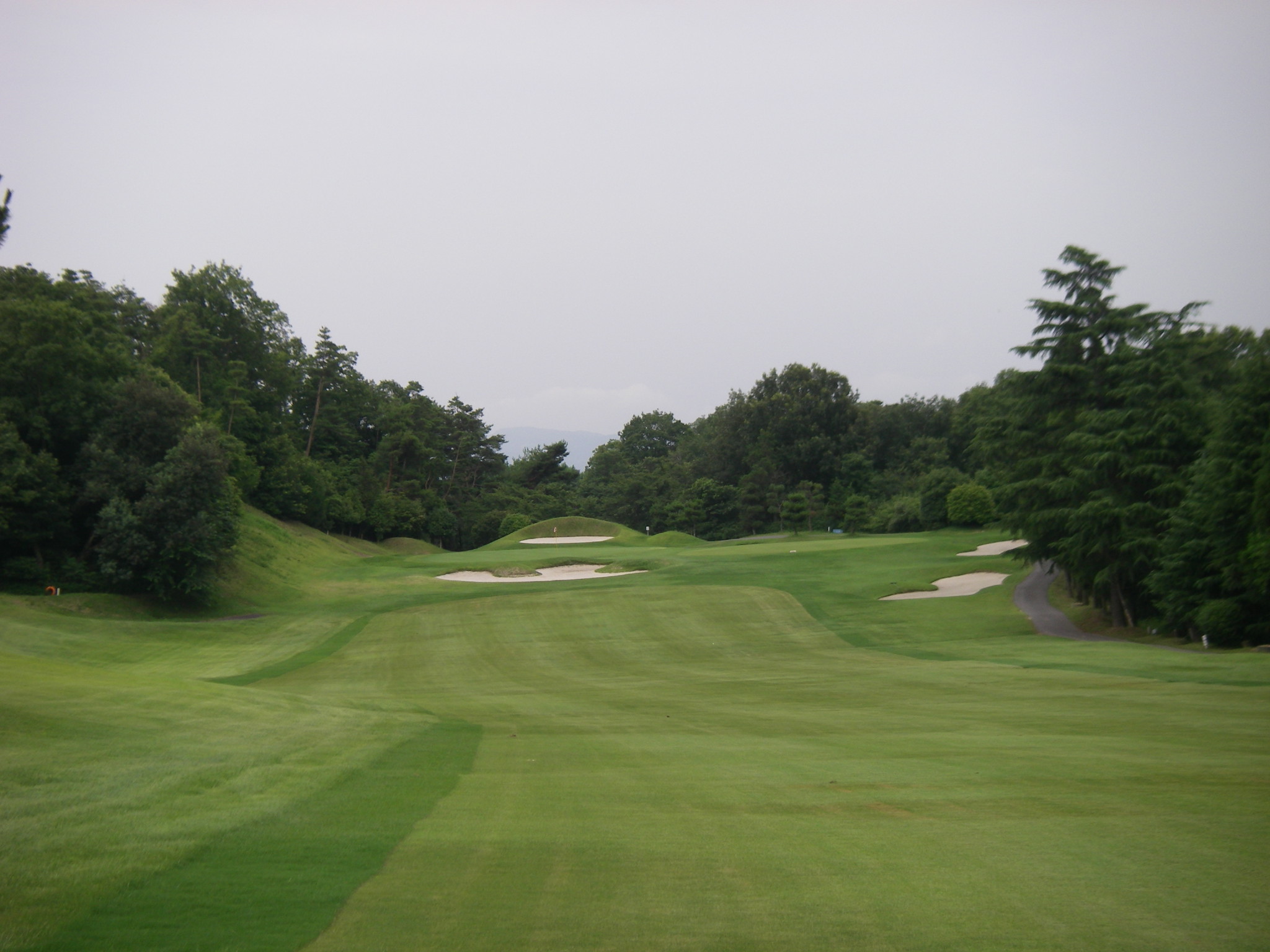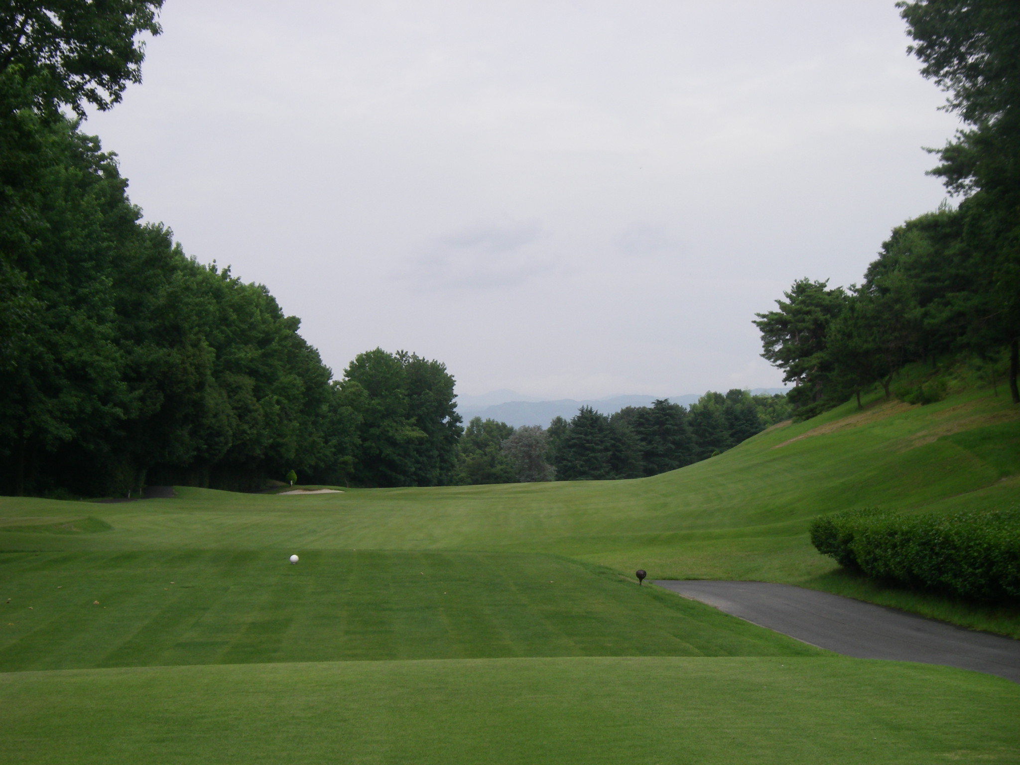 セカンド地点から軽く右ドックレッグになっています。ティーショットは右斜面の山裾が最短コースです。