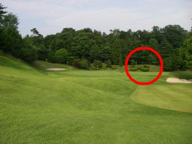 センターやや右側が狙い目。ただし、右へ行き過ぎるとバンカーに捕まりますのでご注意を。