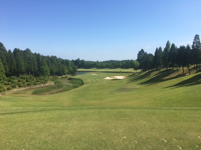 特徴はやはり左側の池でしょうか。いわゆる❝絶壁❞となっているので、グリーンをこぼれると池に落ちてしまうかも。