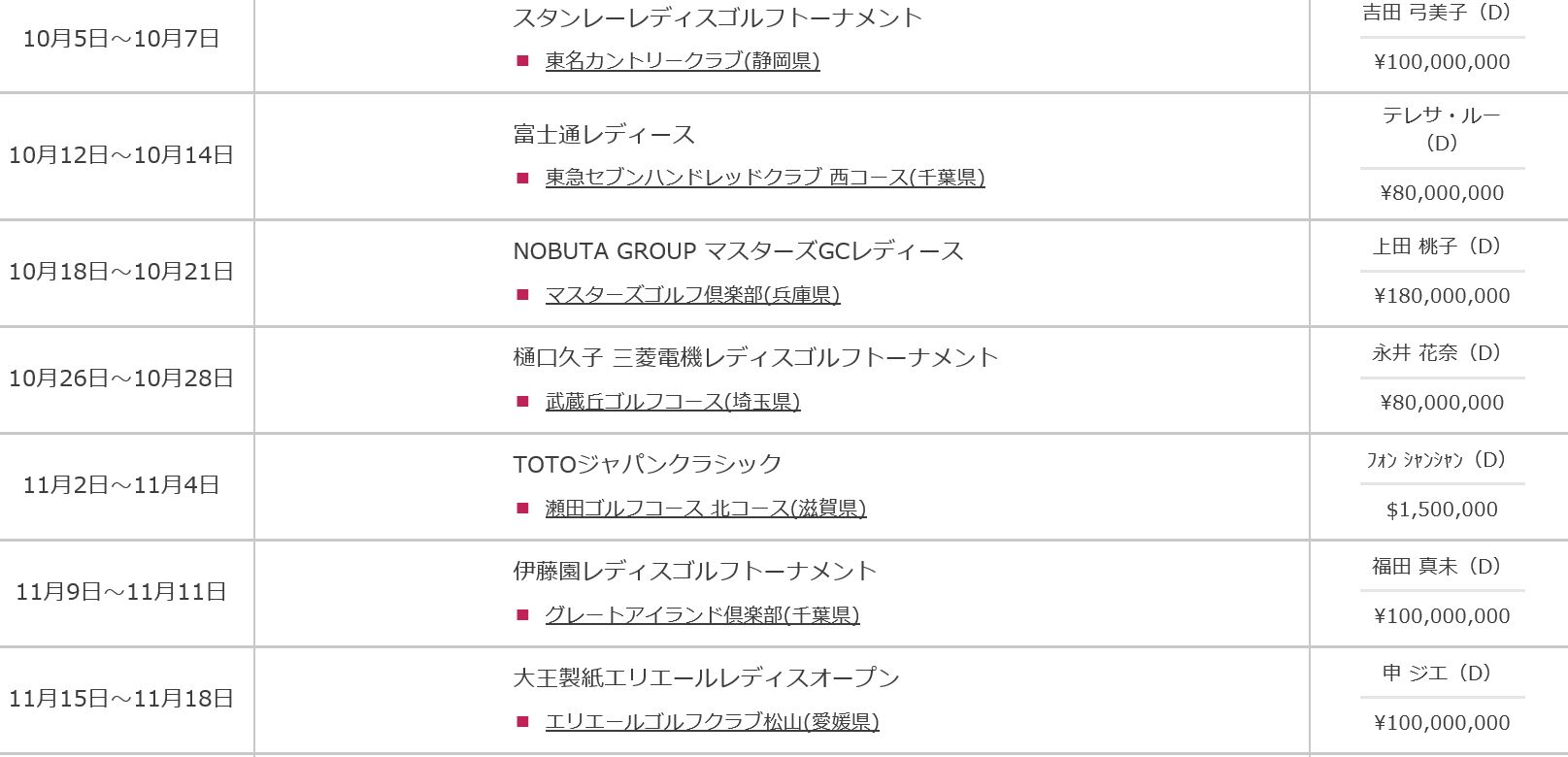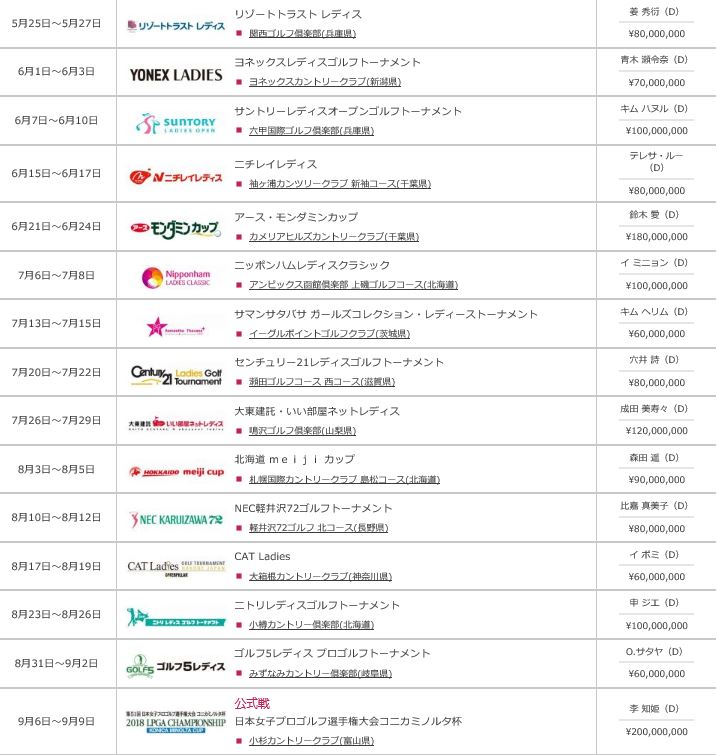 にしても、たくさんスポンサーがついて、女子プロツアーは活気がありますね。スケジュールを見ても・・・